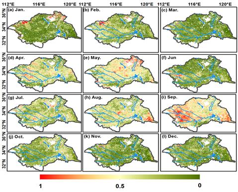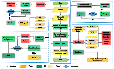 2.以定量研究气象干旱、水文干旱和农业干旱的时空演变特征、形成机制和成灾机制。在此基础上,通过建立的综合干旱模型,定量的揭示了气象干旱与水文干旱的转换机制,并基于“多源数据”发展了精细化尺度的农业干旱监测技术,使得农业干旱的监测由、点尺度、单要素提高到1km*1km分辨率尺度、多要素综合监测。