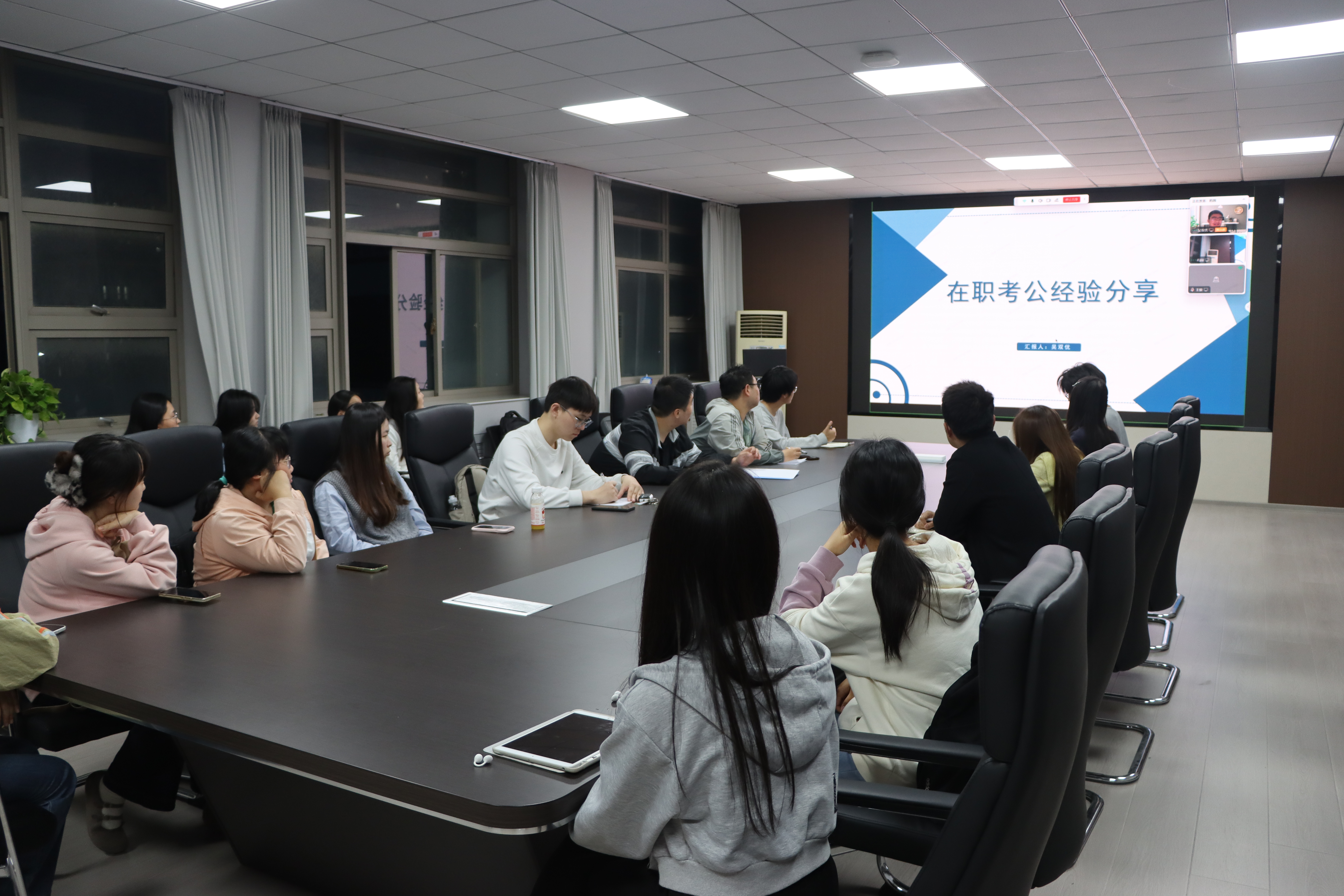 行政楼三楼会议室举办就业经验分享会。会议采取线上线下同步方式进行,由土地资源管理专业教师程超主持,特邀土地资源管理专业2025届本科毕业生吴双优主讲,面向全体同学分享在职考公与就业的成长历程和宝贵经验。