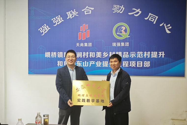 天尚集团作为景区运营单位具体负责实习生管理工作,总经理就两个实习点总体情况进行了简要介绍,并对学生的实习表现给予了高度赞扬。赵冬梅向实习单位对我校教育实习工作的支持和关心表达感谢,并介绍了我校基础教育振兴行动计划的内容,鼓励同学们学有所用,能够扎根大地,服务乡村振兴。尹寿兵寄语实习生,要严格遵守实习单位的纪律和要求,在实习工作中提升能力、努力成长,学有所悟、学有所得。随后,孙鹏向峨桥镇响水涧村党总支书记鲁良平、家发镇联三村党总支书记郑成进行“旅游专业实践教学基地”授牌。