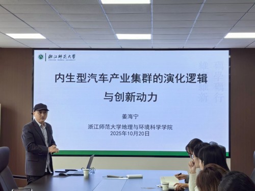 整场报告逻辑严密,案例丰富,为促进内生型汽车产业集群的转型升级提供了崭新的理论视角与实践启示。会后,姜海宁与参会师生就集群边界界定、创新绩效测度等问题进行了深入的交流与探讨,现场气氛热烈。