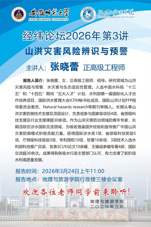 【学术预告】经纬论坛第99讲: 山洪灾害风险辨识与预警