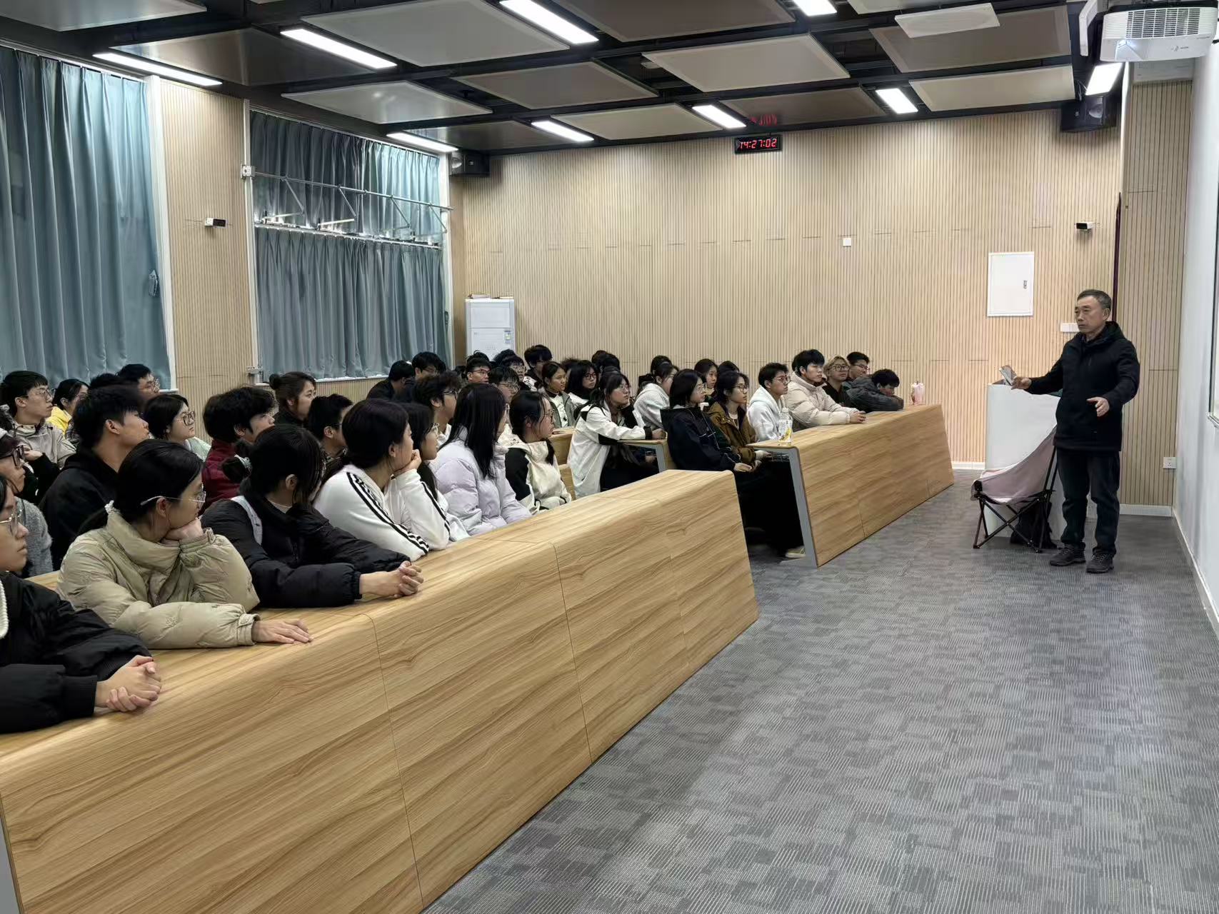 关工委查良松教授担任主讲,以“新时代大学生发展”为主题,为新生答疑解惑,旨在帮助新生尽快适应大学生活,明晰专业发展方向。