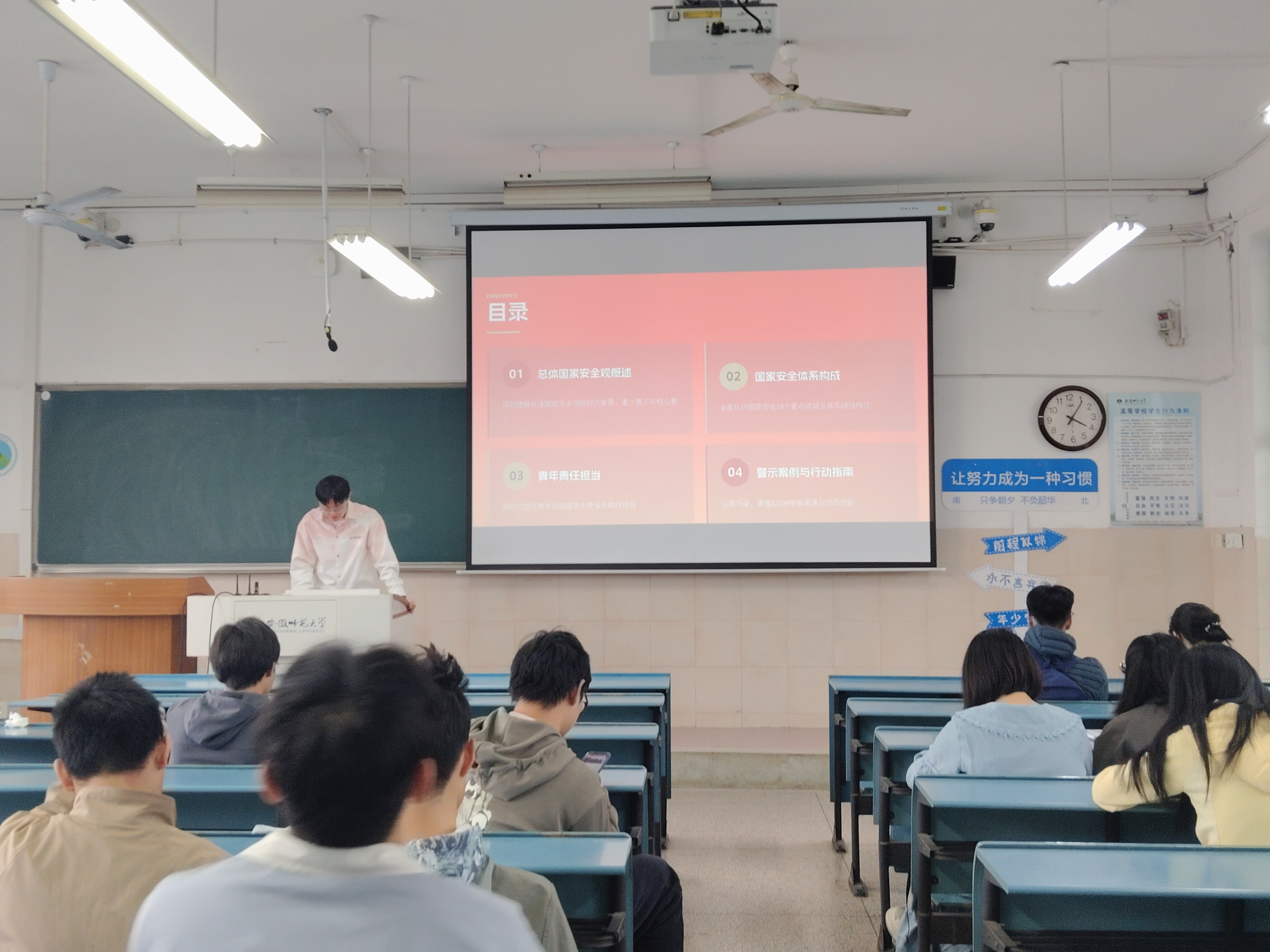 在国家安全体系学习环节,同学们共同学习政治安全、网络安全、生物安全、数据安全等16个重点领域安全知识,清晰把握传统安全与非传统安全的系统性特征,了解当前国家安全面临的新形势与新挑战。