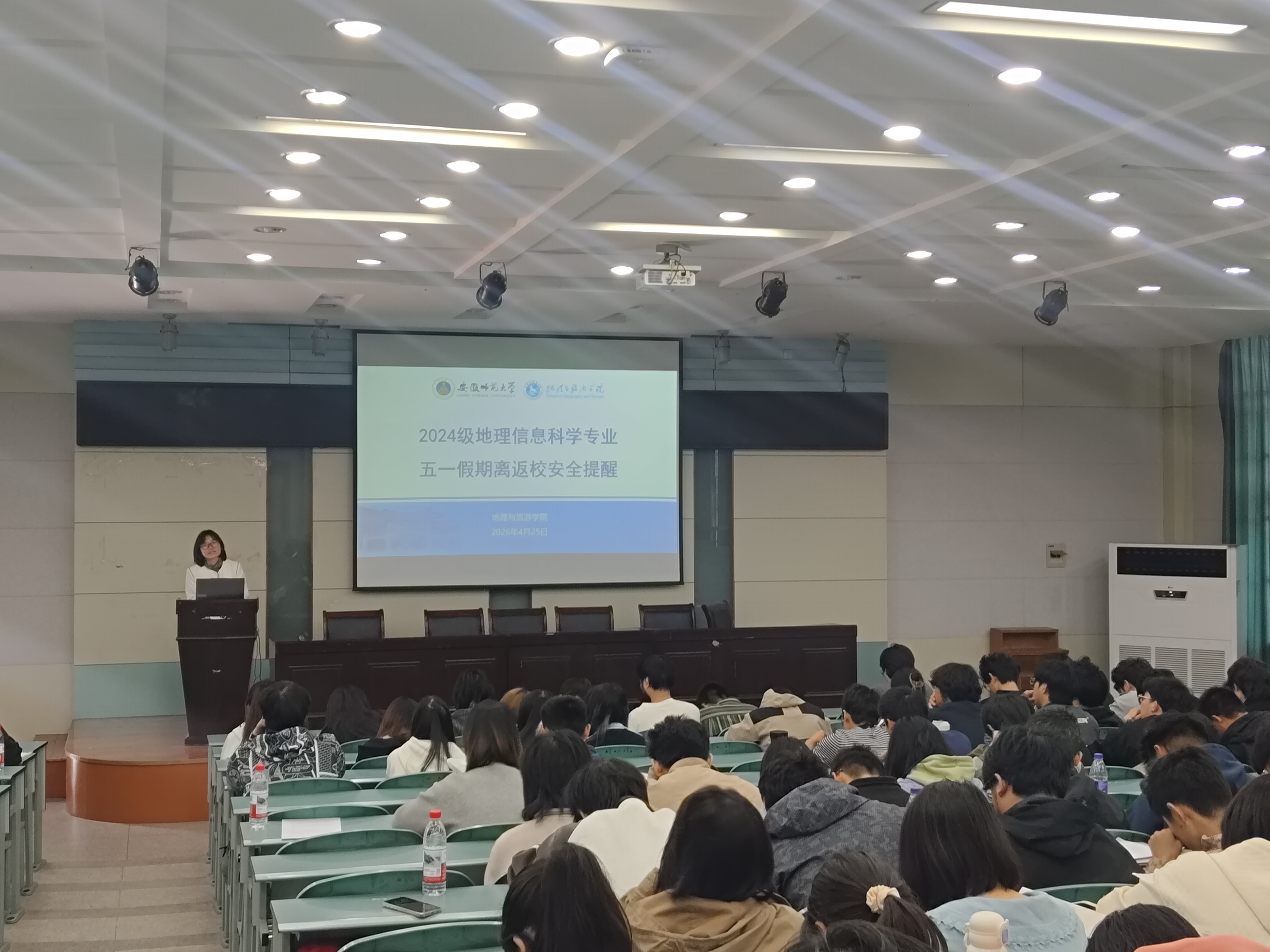 为增强学生假期安全意识,引导同学们合理规划学业与发展方向,4月25日,辅导员韦银艳主持召开2024级地理信息科学专业五一假期离返校安全主题班会,全体同学参加。