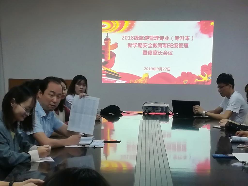2018级旅游管理专业(专升本)召开新学期安全教育和班级管理暨寝室长会议